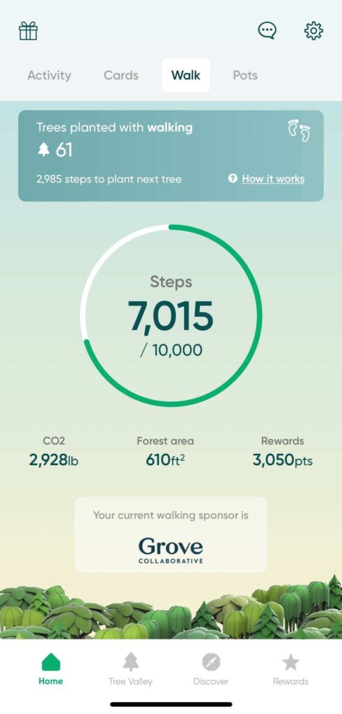 How the walking function works: Earth-friendly companies pay Treecard to feature their items in the rewards section (which you can then go on to redeem), and to act as a โ€œwalking sponsorโ€ when youโ€™re looking at the steps screen. In addition, many users who use the walking function also use the wooden debit card, which brings in money through merchant transaction fees.