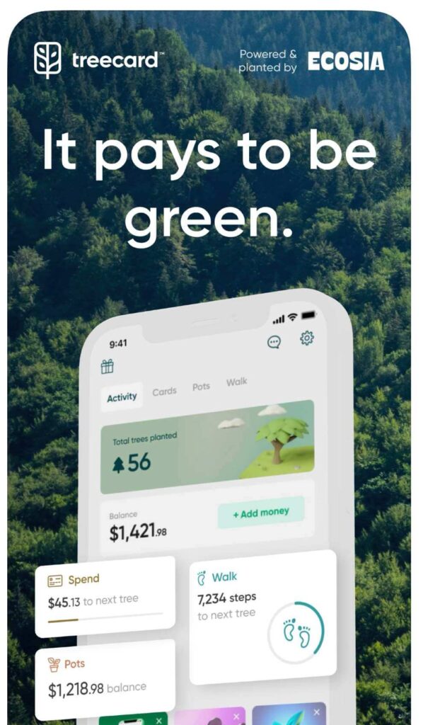 In partnership with the popular web search company, Ecosia, which uses revenue from searches and ads to plant trees, the Treecard App makes getting involved with climate restoration efforts accessible.